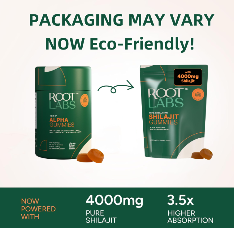 None"4000 mg Himalayan Shilajit Gummies the most advanced 10-in-1 formula. Every vegan gummy packs 75 % fulvic acid plus 85 + trace-minerals and clinically proven botanicals: KSM-66 Ashwagandha, Maca Root, Tongkat Ali and Tribulus.3.5 higher bioabsorption powered by ShilAbsorb technology so you feel the difference faster than shilajit capsules or resin drops. Pure Himalayan resin 100 % hand-harvested above 16 000 ft; triple-lab tested for heavy metals, pesticides and microbials.Key benefits Purity Promotes calm focus Fueled with zinc, iron, seleniumClean-label promise: sugar-free, non-GMO, gelatin-free, gluten-free. Sweetened with prebiotic chicory inulin for gut-friendly taste. Who its for: men women, gamers, lifters, busy parentsanyone seeking pure Himalayan shilajit for men or women in an easy gummy.How to use: Chew 1 gummy morning, 1 evening. Individually wrapped for freshness on the go. Upgrade your stack with Root Labs Alpha Shilajit Gummiespure Himalayan shilajit, re-imagined for todays bio-hackers."