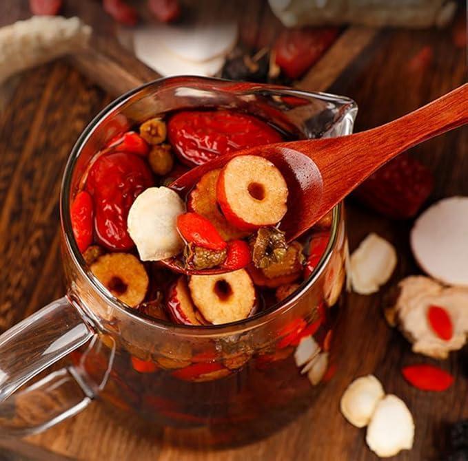 The tea soup is clear and rich, with the fruity aroma of blackberries, the sweetness of red dates, and the lingering aftertaste of ginseng filling your mouth. Multiple layers burst forth on your tongue, and every sip is a natural nourishment! The fruit flesh after brewing can be eaten directly, it's soft, sweet and refreshing!