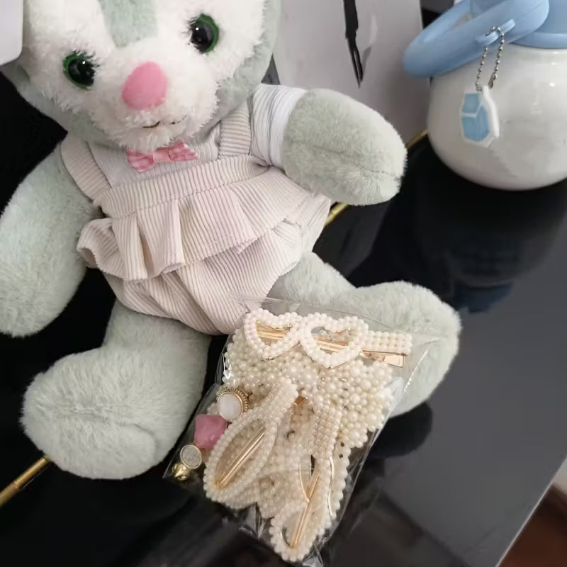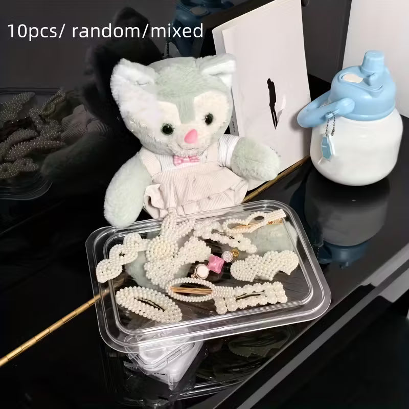 Korean Fashion Pearl Hair Clips Set | 10PCS Solid Color Bow Tie Barrettes with Non-Slip Duckbill Grips for Women